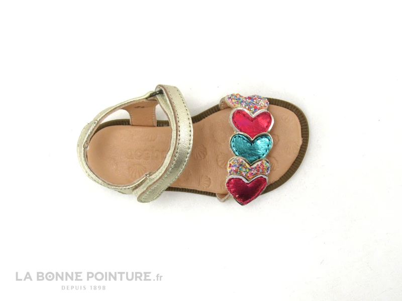 Avec leur cuir doré et leurs petits coeurs multicolores, elles sont irrésistibles, les sandales fille tout en cuir Acebos 5615ET !