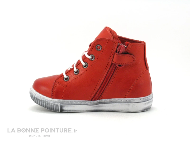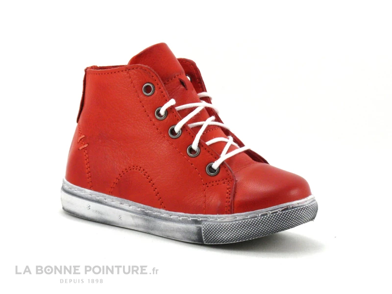 Ces sneakers montantes fille ou garçon sont fabriquées avec un beau cuir souple rouge.