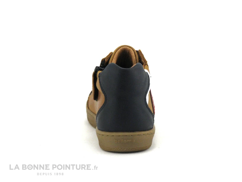 Cette chaussure montante garçon Bellamy Banko associe un cuir marron clair et un cuir bleu marine, avec une ligne blanche et un bout d’Ă©toile rouge sur le cĂŽtĂ© externe.