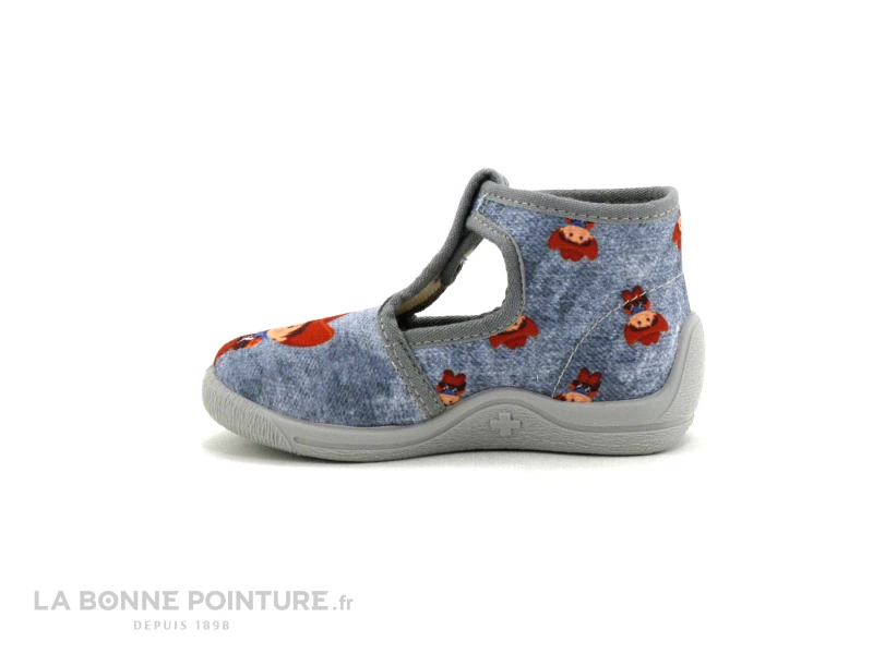La bride salomĂ© des pantoufles garçon permet d’ajuster la chaussure Ă chaque morphologie, rĂ©glable sur 4 positions avec boucle et oeillets mĂ©talliques.