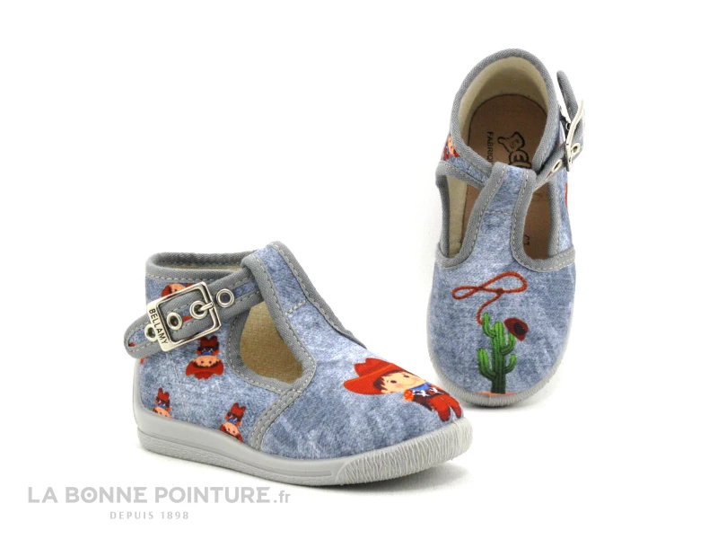 Les chaussons bébé Bellamy Denoir avec cowboy, des pantoufles enfant de qualité et made in France !
