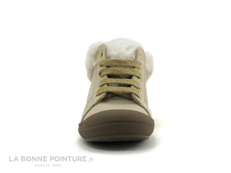 Les boots bébé fille en cuir beige et fourrure Bopy Julie, des chaussures montantes fille avec semelle souple qui combinent mode, fantaisie et trÚs bon rapport qualité / prix !