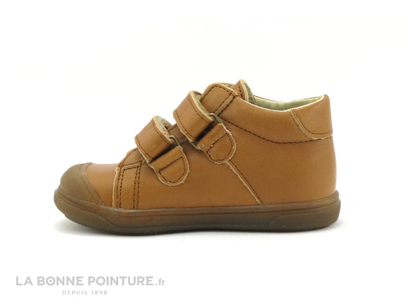 L’enfant découvrira le plaisir de marcher dans cette chaussure montante fabriquée dans un cuir souple au chaud coloris camel.