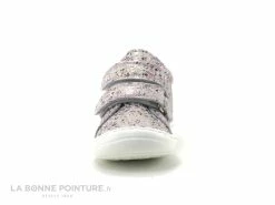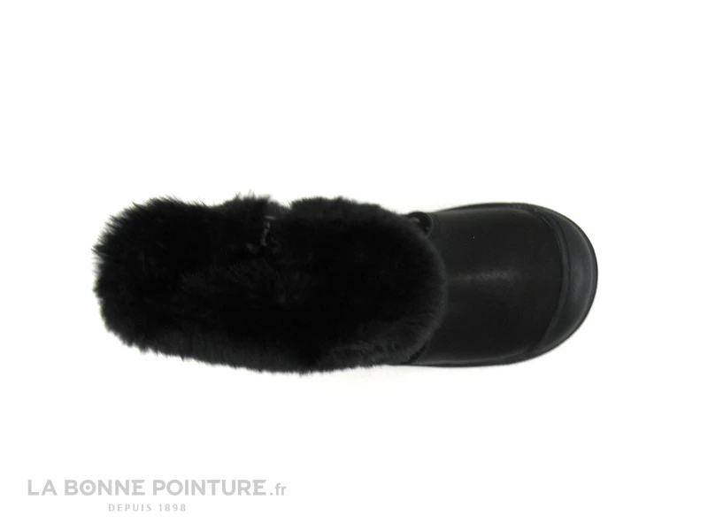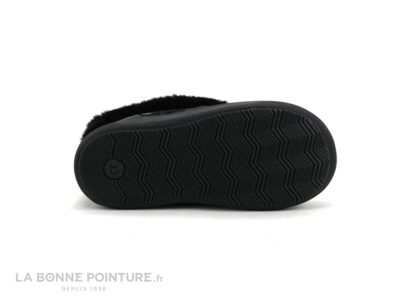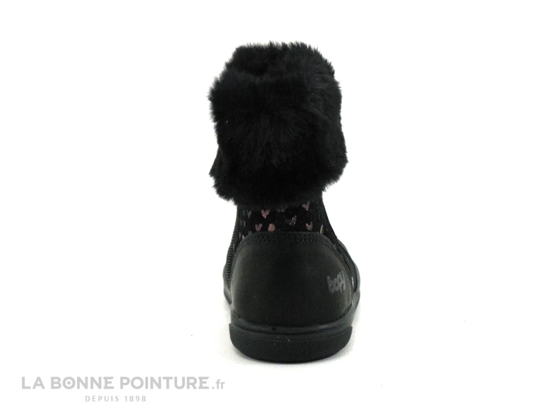Un gros coeur rose pailleté est cousu sur le côté externe de la chaussure fille Bopy, et un large revers en fourrure noire vient parfaire la bottine.