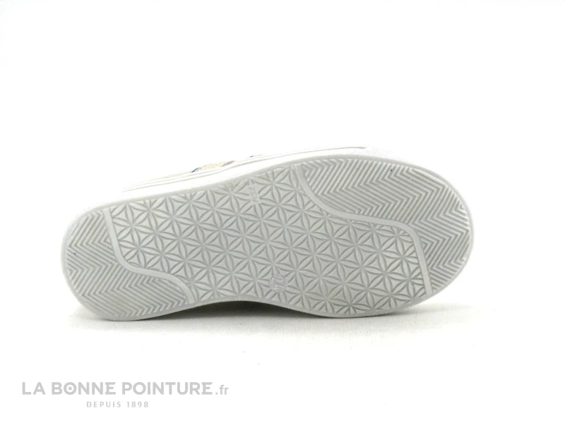Il y a aussi deux liserés brillants aux tons de bleu, sur le cÎté externe de la chaussure fille Bopy Scaline.