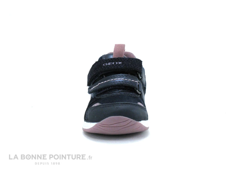 Toutes craquantes, ces adorables baskets bébé fille à scratch Geox Rishon B150LA bleu marine et rose !