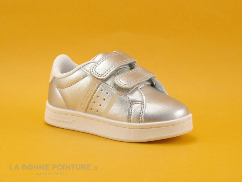 Votre fillette pourra fermer facilement ses belles baskets argent Kappa Alpha grâce au 2 brides à scrach.