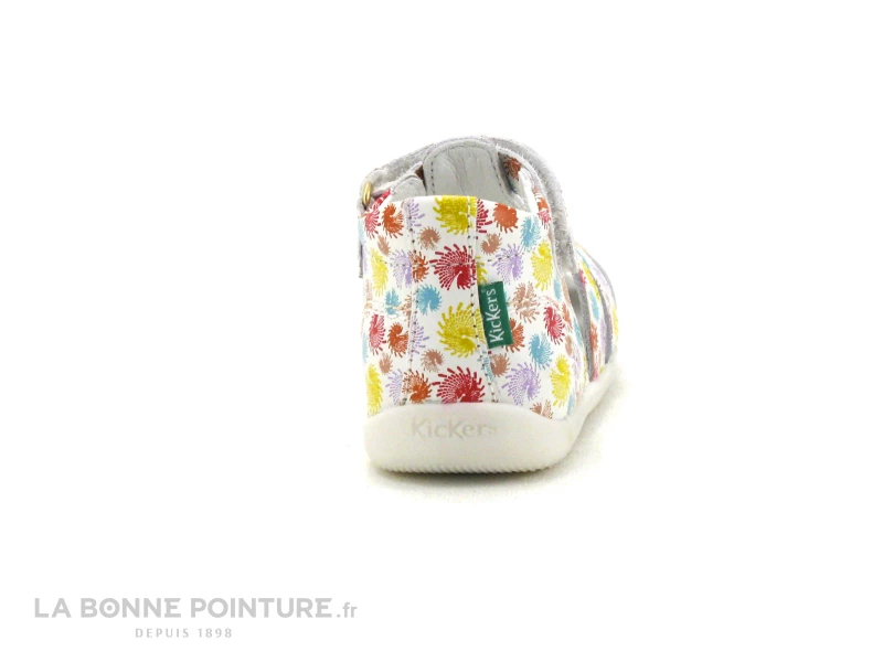 Les sandales fille blanches et multicolores Kickers Bigflo, des nu-pieds montants de grande qualité et tout en cuir pour les fillettes en été !