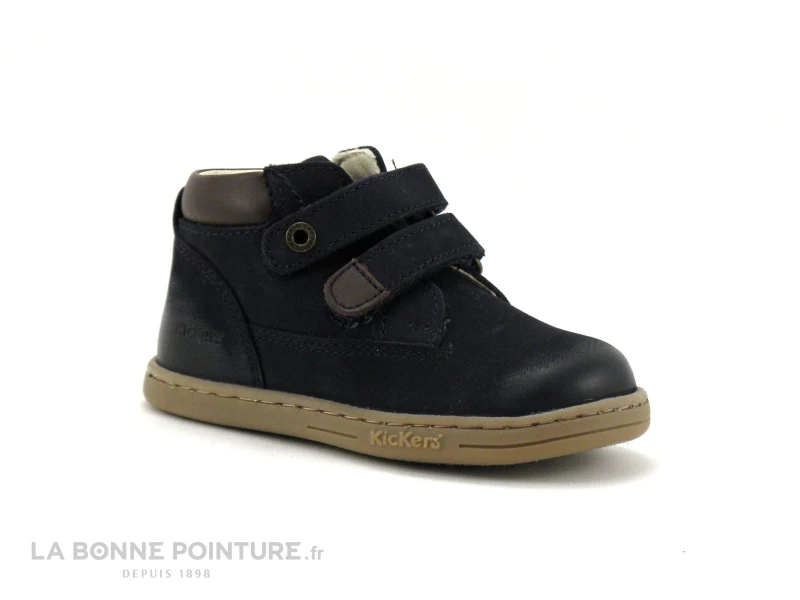 Les bottillons bébé en cuir bleu marine intérieur cuir Kickers Tackeasy, des chaussures montantes de grande qualité pour les garçons !