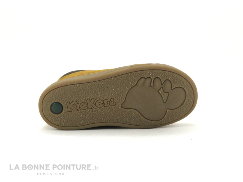 La semelle de marche du bottillon garçon marron Kickers Tackland est souple, en caoutchouc.
