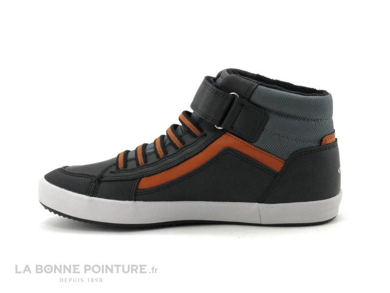 Les baskets montantes garçon Geox Gisli noires et orange, des sneakers mode enfant faciles à enfiler au meilleur rapport qualité / prix !