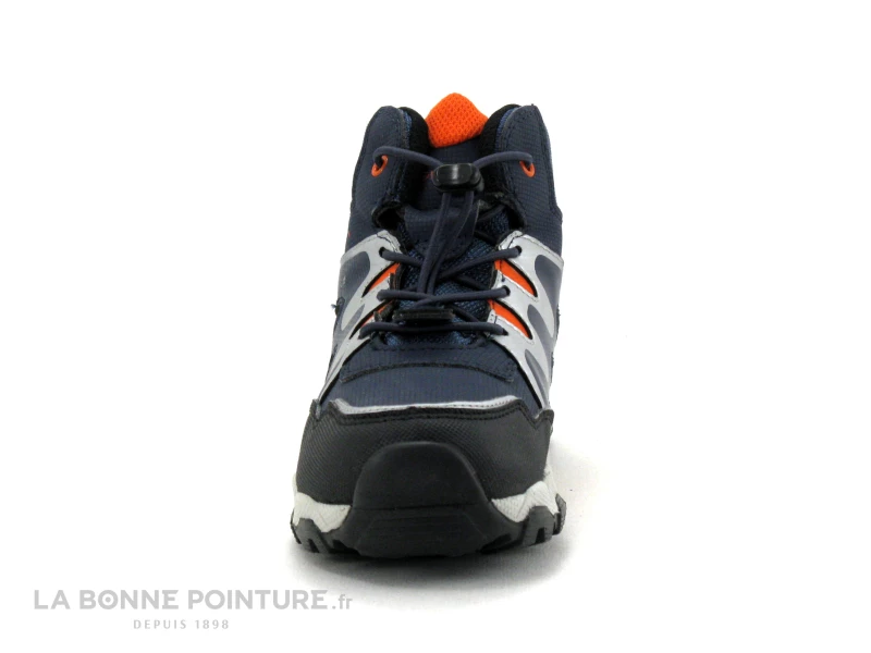 Cette chaussure montante garçon Geox Magnetar J263ZA est en textile et matières synthétiques résistantes bleu marine, noir, argent et orange.