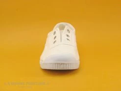 Cette chaussure enfant en toile rose s’enfile et se ferme facilement, grâce au lacet élastique et à la bride velcro.