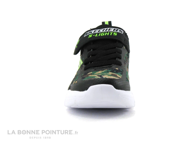 Cette basket garçon Skechers Lights® 400017L est en textile et matières synthétiques noir et imprimé camouflage.