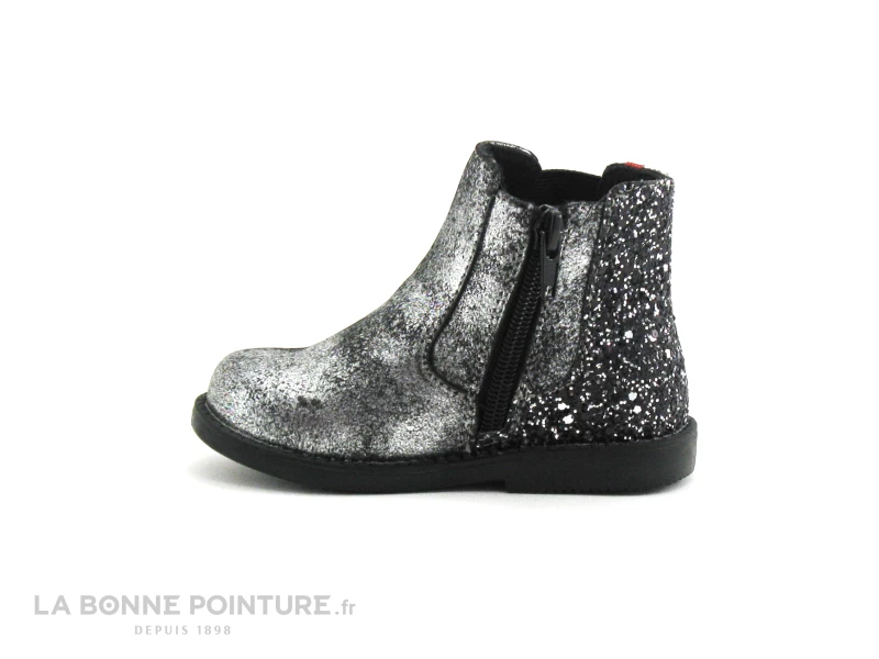 Cette bottine fille est argent nuancé, avec plein de paillettes sur la partie arrière.