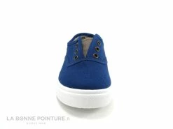 Ces tennis enfant sont en toile bleu marine, avec un renfort en caoutchouc sur l’avant qui protège les petits orteils.